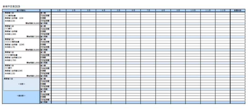 借入金の返済表のイメージ(キャッシュフローコーチが経営会議で使用してい