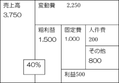 (1,000+500)÷(1-0.6)=3,750万円が必要売上です。